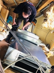 Installation d'une climatisation avec unité intérieur dans les combles et distribution chaud et froid par des bouches dans les chambres et pièces de vie.